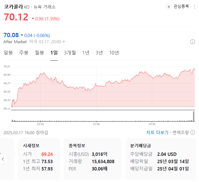✅ 코카콜라(KO) - 배당 수익률 3.1%, 글로벌 음료 시장 점유율 1위