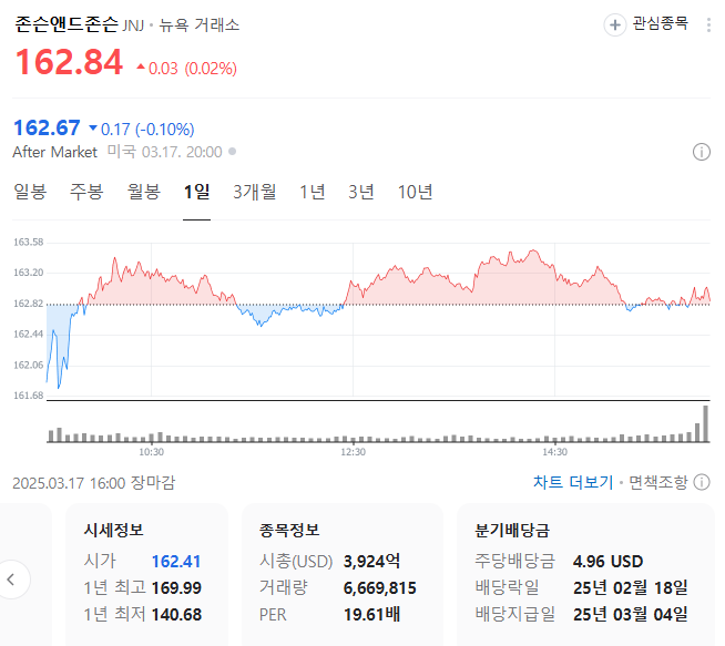 ✅ 존슨앤드존슨(JNJ) - 배당 수익률 2.9%, 헬스케어 산업의 선두주자