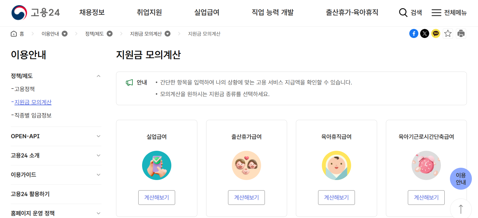 - 복지로 → 급여 계산 메뉴