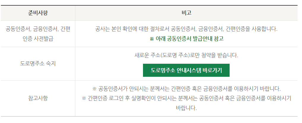 공동인증서나 금융인증서, 또는 네이버 인증서를 인터넷 청약신청 접수일 전에 미리 발급을 해두셔야 합니다.