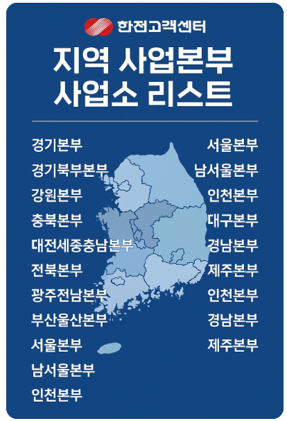 지역별 한전 고객센터 사업소 리스트
