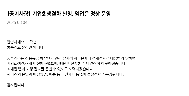 2025.03.08 - [분류 전체보기] - 홈플러스 기업회생 신청 배경, 그 원인