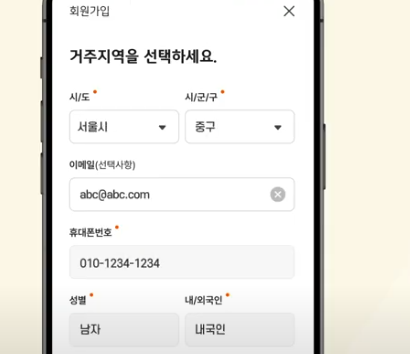 권한 설정 및 회원가입 (이름, 본인인증, 거주지역, 이메일 입력 후 간편 비밀번호도 등록합니다)