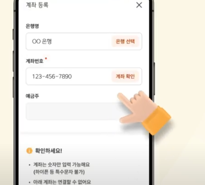 주의할 점은 본인명의 계좌만 등록 가능하다고 합니다