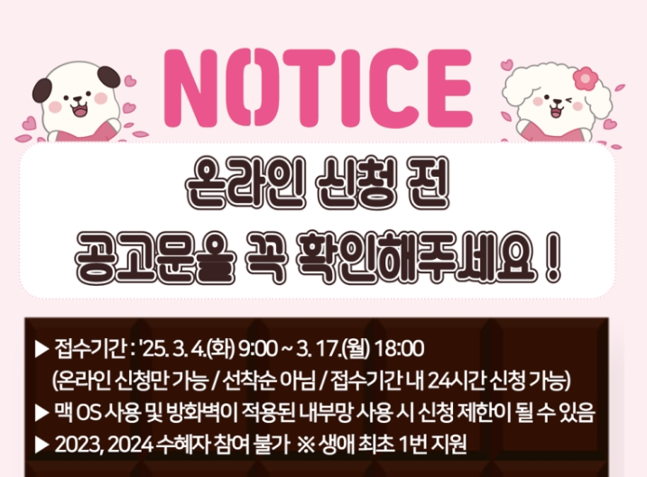 신청기간 : 25. 3.4(화) 9:00 ~ 3.17(월) 18:00 (선착순 아님)
