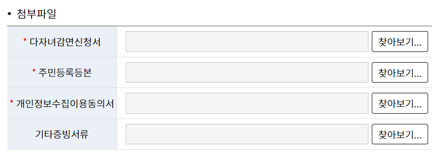 5. 기존 3자녀 이상 가구의 감면 종료 시, 2자녀 가구 감면 혜택을 받기 위해서는 신규 신청해야 합니다.