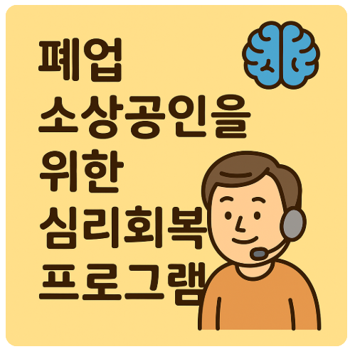 정부는 이러한 폐업 소상공인의 심리적 회복을 돕기 위해 전문 상담과 멘탈케어 프로그램을 운영하고 있으며, 이는 단기적 위기 극복뿐 아니라 재기의 기반이 되는 정신적 회복을 위한 핵심 지원입니다.