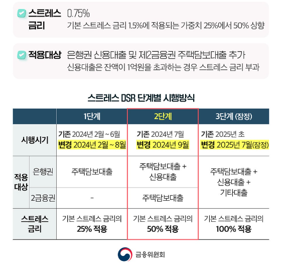 - 2024년 9월부터 스트레스 DSR 2단계 시행